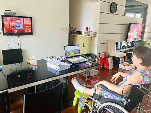 病休党员曹玉英,在家准时收看,聆听习总书记的重要讲话;